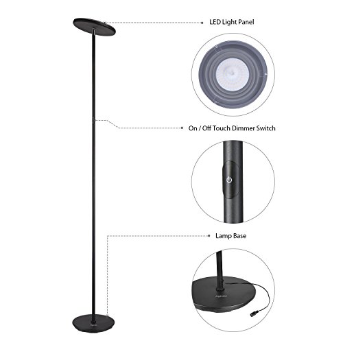 Aglaia Torchiere Floor Lamp, 36W Smooth Dimming LED Stand Lamp with Touch Control and Directional Head, 3000K Warm White for Bedrooms, Living Rooms