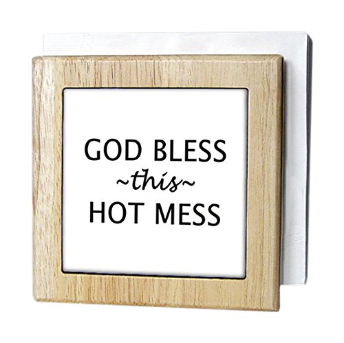 3dRose nh_221115_1 God Bless This Hot Mess Tile Napkin Holder, 6", Natural