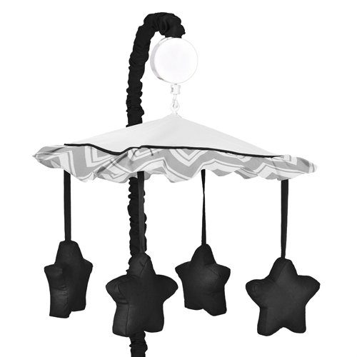 Sweet Jojo Designs Black and Gray Chevron Zig Zag Musical Baby Crib Mobile