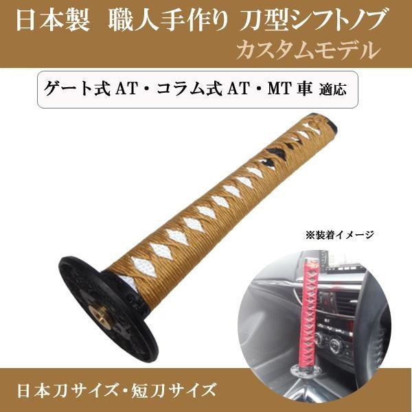 刃物の町・岐阜県関市で日本刀を製作している職人が、一本一本手作業で作った刀シフトノブ。本物の日本刀と同じ質感が味わえる一点物です。見た目も美しく、車内をカッコ良くデコレーションできる一品です。刀シフトノブで一番重要となる柄巻きは、岐阜県関市で日本刀の柄を製作している柄巻き職人に、一本一本手作業で巻いて頂いております。 |