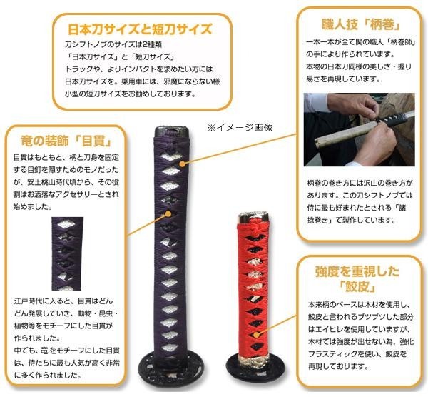 | 本物にこだわった刀シフトノブで楽しいドライブを!! |