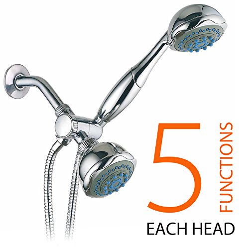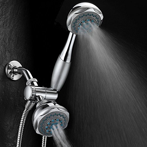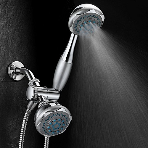 Ultra-Luxury Shower Head with Handheld Shower, Water Diverter and Shower Hose. Choose from 24 full and combined water flow patterns. Use each shower separately or both shower head together!