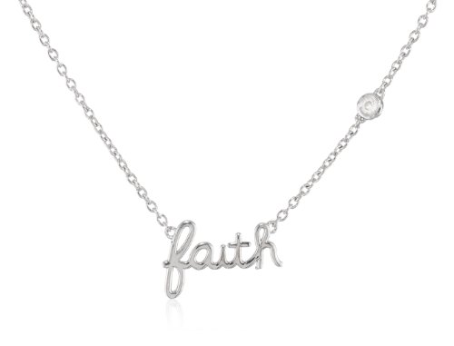 Message necklace featuring "faith" pendant at center and small bezel-set diamond station