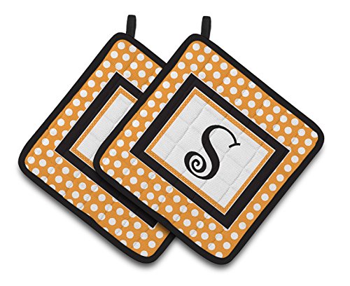 Caroline's Treasures Monogram Initial S Orange Polkadots Pair of Pot Holders CJ1033-SPTHD, 7.5HX7.5W, Multicolor