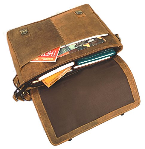 -. Binding : Electronics -. Brand : kk's leather -. Color : Vintage Brown -. EAN : 0740642788712 -. Feature : Full grain crazy-horse genuine cow leather / Genuine leather and antique brass hardware top handle / Front flat with twin buckles decoration and push button closure / Interior with compartment pocket which can store your 16" table PC or A4 files / Back exterior with zipper pocket can also store your iPad -. Label : KK's -. Manufacturer : KK's -. Model : KK's10 -. MPN : KK's10 -. PartNumber : KK's10 -. ProductGroup : Home -. ProductTypeName : HOME -. Publisher : KK's -. Studio : KK's -. Title : KK's 18" Inch leather briefcase bag messenger satchel shoulder laptop bag for men and women -. UPC : 740642788712