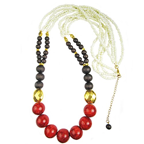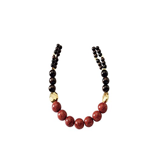 Regalia by Ulti Ramos 스펀지 코랄,우드 비즈,자기의 롱 목걸이와 골드 도금 메탈 비즈Assembled in the U.S.A.