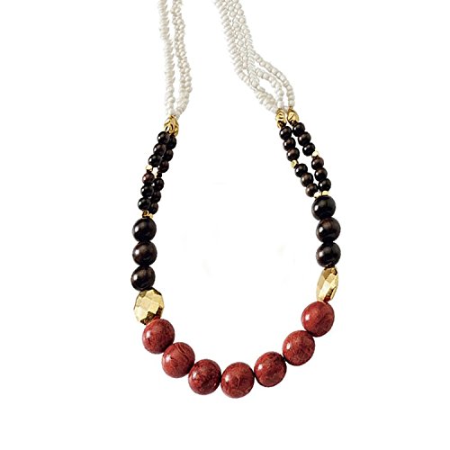 원본상품명: レッドコ?ラル、ウッドビ?ズ、磁器とゴ?ルドメッキメタルビ?ズネックレスAssembled in the U。S。A。