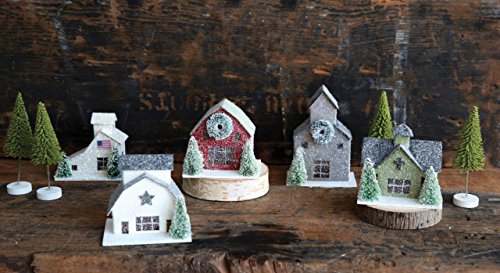 Studio : Creative Co-Op Publisher : Creative Co-Op Binding : Kitchen Product Description Dress up your mantle in style this holiday season with this 9-piece mica glittered Christmas village set. Measuring 2.5-inches tall, this set features 5 buildings with a snow frosted look and three evergreen trees. Perfect set for your mantle or train set display. 0