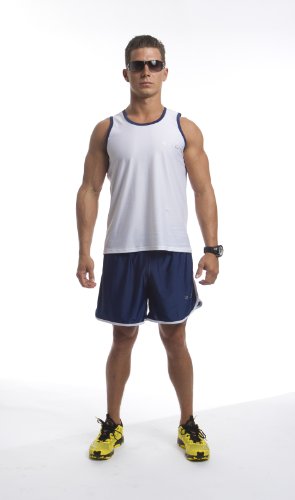 R2L Fashion Men's Workout Shorts Blue w/ White Trim Medium