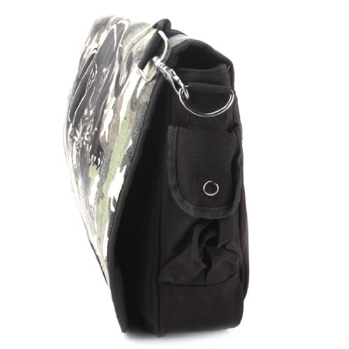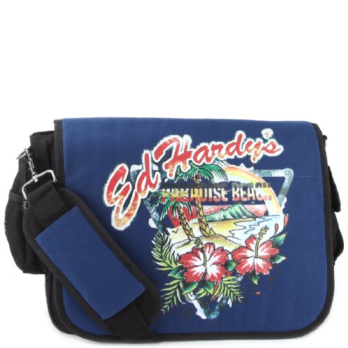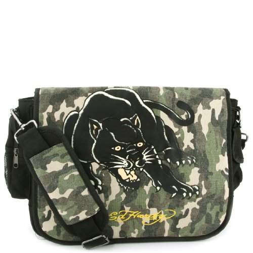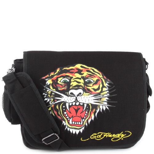 -. Brand : Ed Hardy -. Department : boys -. Feature : Main Compartment Secured with a heavy-duty Velcro Flap closure / Exterior one flap pocket one zippered and one mesh pocket on / internal two flap pockets, one zippered, one accessory pocket / Adjustable padded shoulder strap, fully lined interior / 17.5 x 12.5 x 3.5" (WxHxD) -. Model : Leo -. ProductGroup : Apparel -. ProductTypeName : LAGE -. Title : Ed Hardy Leo Canvas Shoulder Messenger Bag