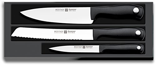 -. Feature : Art : Starter Messerset mit Kochmesser, Brotmesser und Spickmesser / Klinge : spezieller Klingenstahl - rostfrei / Schneiden : Präzisionsschliff bzw. Sägeschliff / Griff : Kunststoff schwarz - Logopoint / Pflege : spülmaschinengeeignet