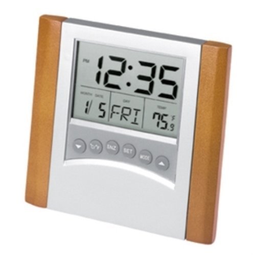 4 1/2 Inch LCD Time/Date/Temperature Desktop Alarm Clock, Wood Trim