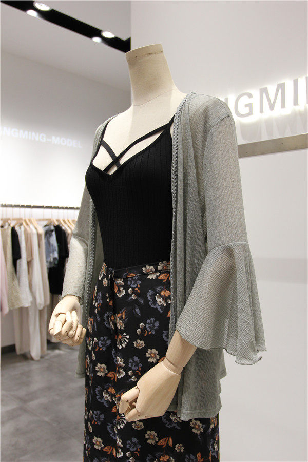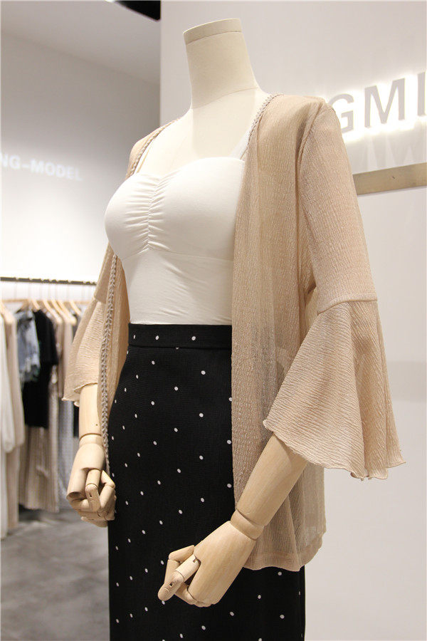 喇叭袖设计整体混搭起来很气质又很时髦,面料肌理