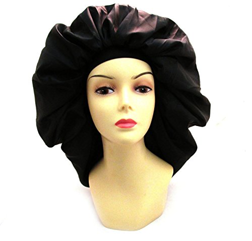Dream Super Jumbo Night & Day Cap - Black, Satin, fabric, elastic band, cotton, holds hair in place, large, extra large, one size fits all, sleep cap, comfortable, soft...