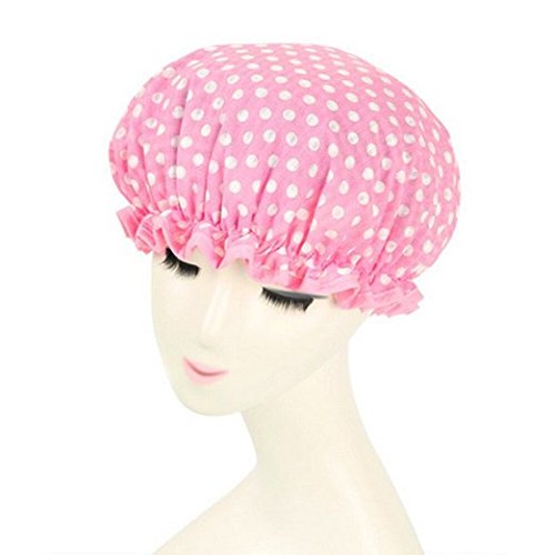 Shintop Waterproof Shower Cap Adult Resizable Double Layer Environmental Bath Hat Chiffon+EVA Pink Dot (Pink)