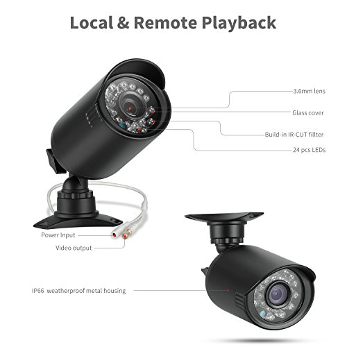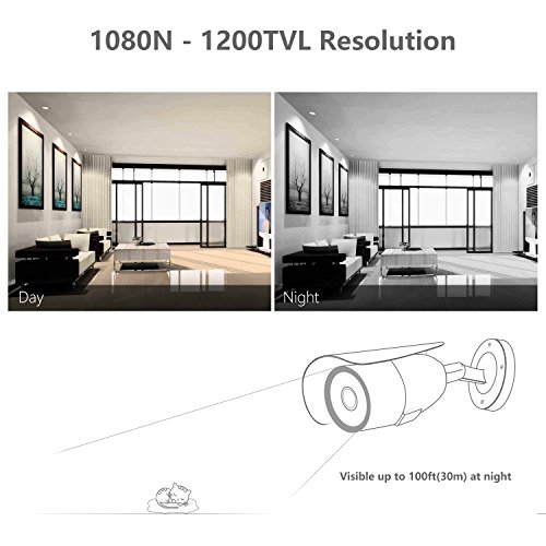 High Resolution: 8*1200TVL AHD outdoor surveillance cameras, better than 960H, Night vision up to 80ft/25M, 24 pcs Infrared LEDs, IR-cut filter tech, offers crisp clear live video
