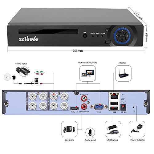 8CH Video Surveillance DVR: compatible with any monitor that uses a VGA or HDMI connection,like TV or desktop monitor. with USB backup function, support analog camera, ip cameras and AHD cameras