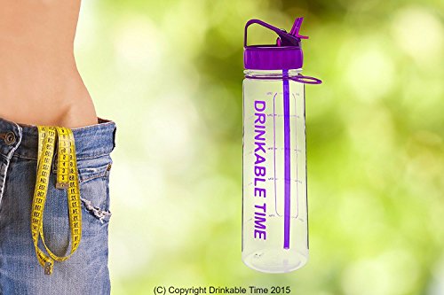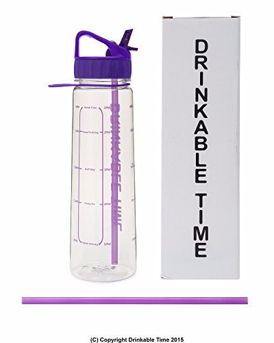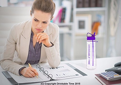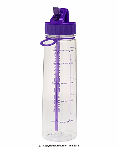 Drinkable Time 30 Oz Hydration Fitness Workout Sports Water Bottle Time Tracking Goal Marked Measurements and Encouraging Words With Straw BPA Free Plastic Insulated Fits Ice Cubes Leak Spill Proof