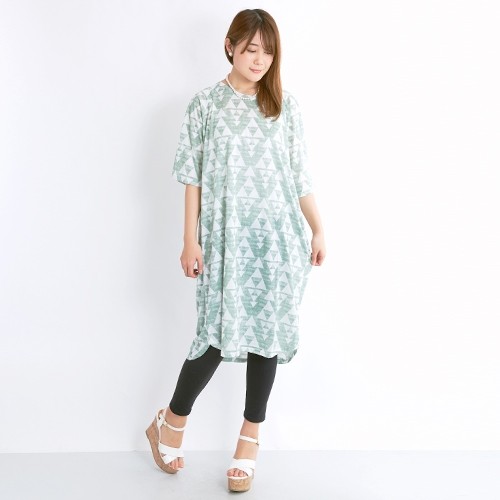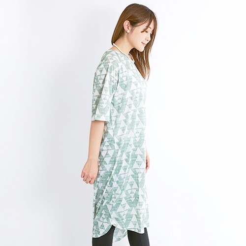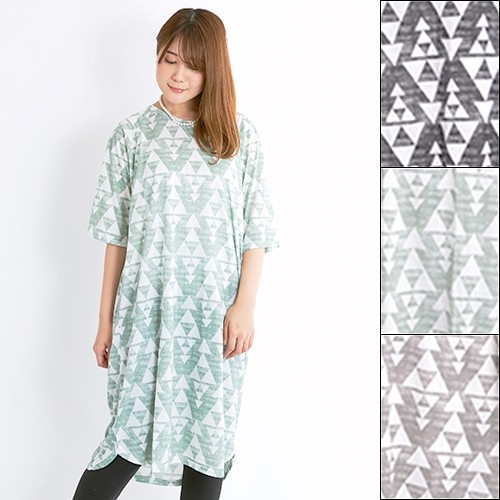 ゆったりシルエットで気になる体型をカバー三角柄がレトロでかわいい1枚!フリーサイズ