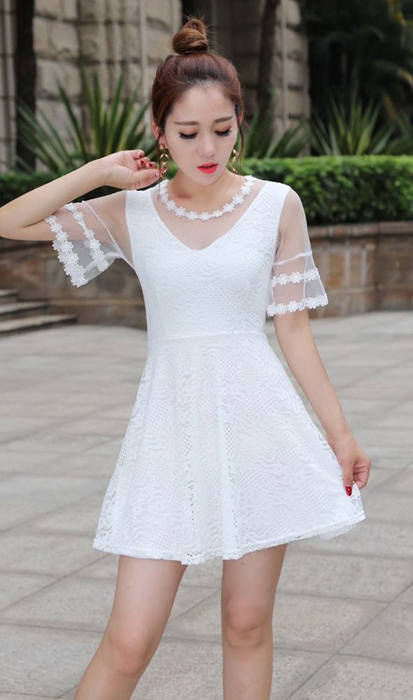 | 商品名 | □総レースシースルーチュール切替Aライン半袖ミニパーティードレス全2色FYQ80910#e192e193【予約販売12月下旬より順次発送予定】 【送料無料】Aラインミニワンピース パーティードレス 総レース シースルーチュール切替 半袖 |