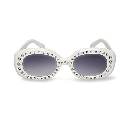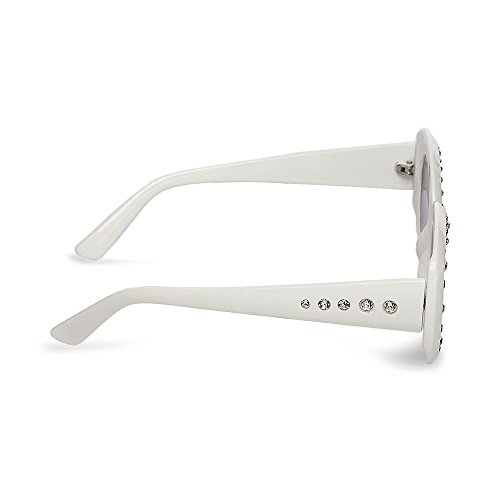 Product Description You can end your quest for vintage sunnies because these chic shades are just what you need to achieve a glamorously retro look! Sparkling rhinestones trim this style's Mod white frames, while pretty purple tinted lenses complement. Plastic frame arms Rhinestone embellishment Lenses offer UV protection Case or Microfiber pouch included 0