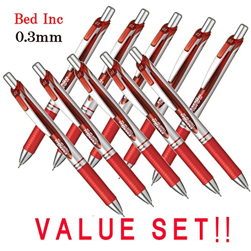 Pentel New EnerGel Deluxe RTX Retractable Liquid Gel Pen,Ultra Micro Point 0.3mm, Fine Line, Needle Tip, Red Ink Japanese Box of 10 (With Our Shop Original Product Description)