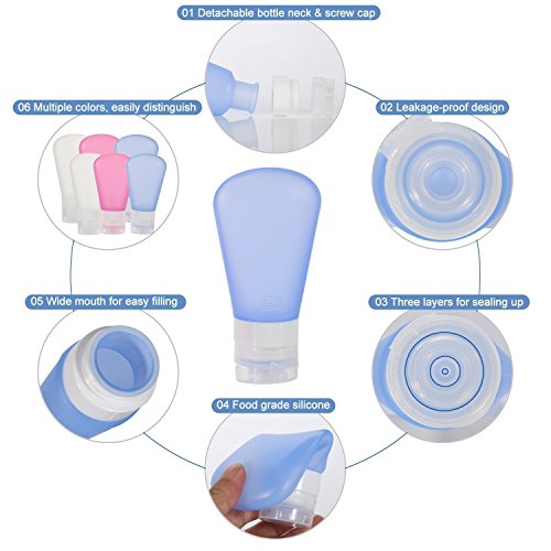 Homestead Collectibles 1.25 2 3 oz Silicone Travel Bottles 3 Piece Set (Blue)