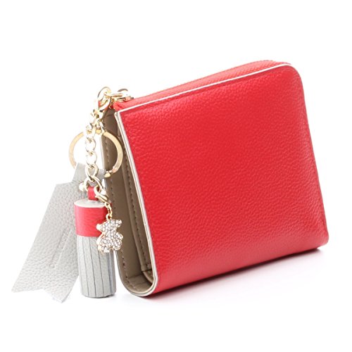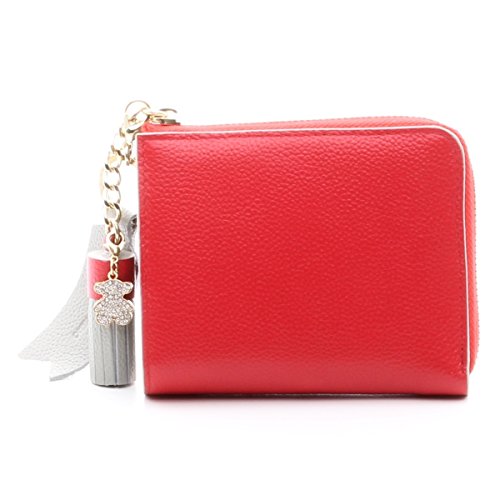 -. Feature : ※素材:本革 / 【平置き実寸】 H9 W11 D2 (cm) / 内側:札入れ×1 ポケット×2 カード入れ×2 小銭入れ×1 / セット品: 財布+ミニクマチャーム+巾着