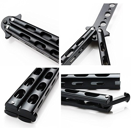 ✅No offensive blade: Our butterfly knife trainer does not have a sharp edge so you do not have to worry about cutting yourself while practicing tricks and whatnot. The unsharpened blade of our practice butterfly knife will keep you away from danger as a beginner.