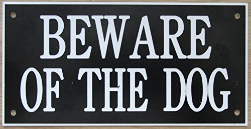 6in x 3in ACRYLIC BEWARE OF THE DOG SIGN IN BLACK WITH WHITE ENGRAVED PRINT