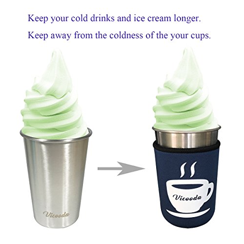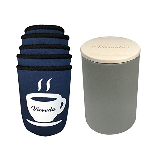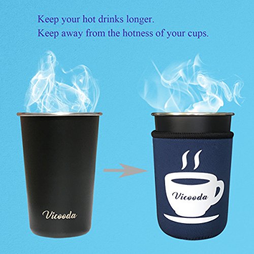 Vicooda Reusable Neoprene Drink Insulator, Coffee Sleeve, Washable Cup Sleeve for 16 oz cups (Pack 5) (Dark Blue)