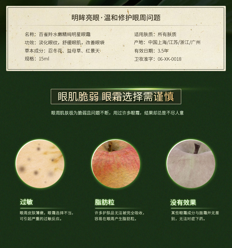 百雀羚水嫩精纯明星眼霜 淡化黑眼圈眼袋细纹紧致眼周