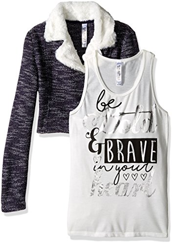 Beautees Big Girls' 2 Pc. Moto Jacket With Sherpa and Heart Screen Tee, Navy Sherpa, X-Large