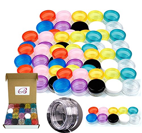 ( Quantity: 160 Jars ) Beauticom® 3 gram / 3 ml High Quality Small Sample Empty Clear Containers with MultiColor Lids for Powder Makeup, Cream, Lotion,...