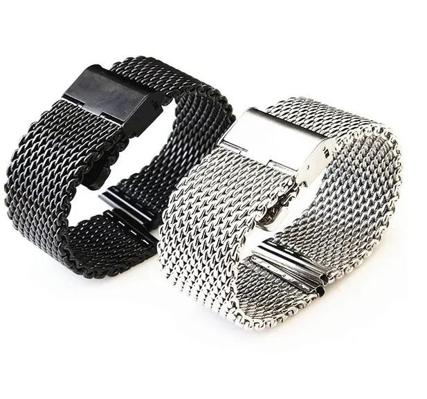 | [해외]도매 10 개/몫 18 미리메터, 20 미리메터, 22 미리메터 24 미리메터 스테인레스 스틸 시계 밴드 시계 스트랩 팔찌 스트랩 은색 black-6831 |