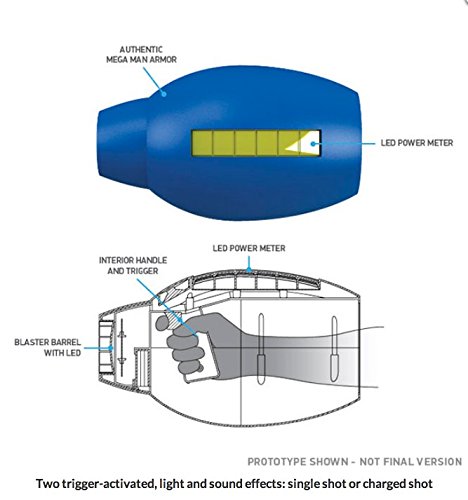 Wield the powerful weapon bestowed to Mega Man when you nab the Mega Man Mega Buster Gun Replica! Turn it on and you'll hear a power up sound and watch the power meter fill up. Reach in, grab the handle, and you're ready for action! Quickly pull the trigger and you'll hear a single fire sound and the end will flash. Hold in the trigger, though, and you'll watch the power meter fill and the sound intensify until you release the trigger, firing a charged shot! When you are finished vanquishing evil robots for the day, switch the Mega Buster off and enjoy the power down lights and sounds. Batteries: 3 x AA (not included)Feature