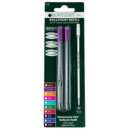Monteverde Ballpoint Refill to Fit Cross Ballpoint Pens, Medium Point, Soft Roll, Purple, 2 per Pack (C132PL)