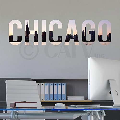 Chicago Lettering Skyline vinyl lettering decal home decor wall art saying