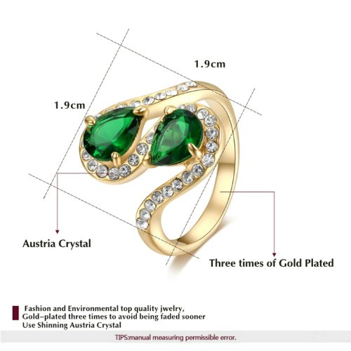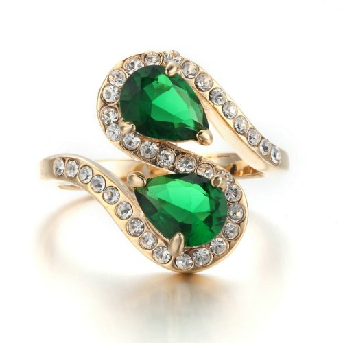 - Feature : This ring is made of high quality base metal and plated with three layers of 18K rose gold. / Dual emeralds accent with crystals around them with sparkling grace and beauty. / An excellent gift for anniversaries, graduations, birthdays, or just as a surprise to remind that special someone how much you care. / Shipped out in an exquisite jewelry gift box. Delivery time 7-15 days. / One year warranty to ensure you a perfect shopping experience.