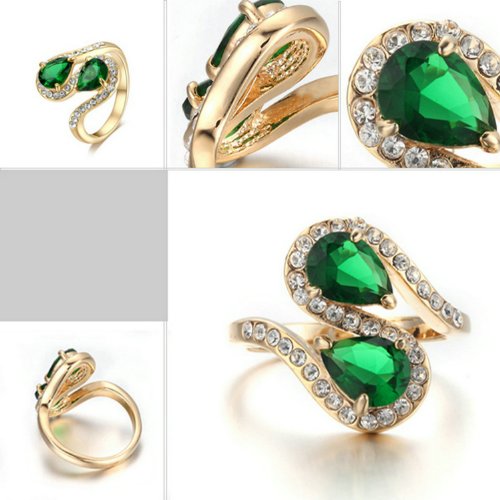 - Title : Yoursfs Teardrop Emerald Shining Crystal Dual Green Gemstone Fashion Cocktail Ring 18K Rose Gold Plated (7)