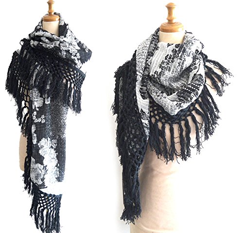 -. Feature : サイズ:1辺の長さ180cm、2辺の長さ116cmの三角形、フリンジ17cm / カラー:ブラック / 素材:コットン75%、ウール25%