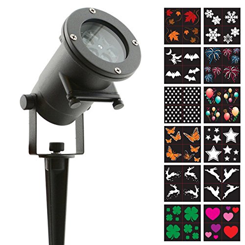Night Stars LL01-HC Holiday Projector Light, 12 Patterns Waterproof Moving Rotating Projector Indoor and Outdoor Use. Led Projector Light Show for Halloween, Party, Holiday Decoration