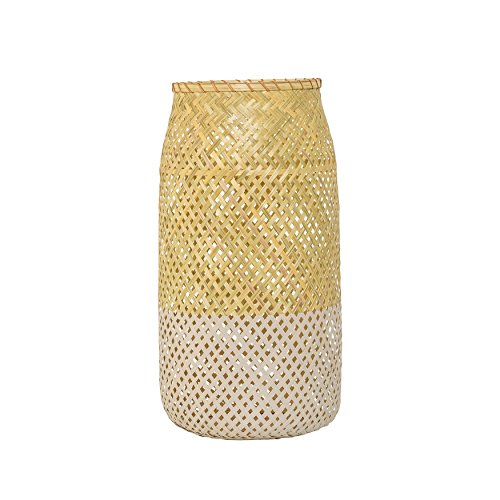 -. Title : Bloomingville Natural and Cream Bamboo Lantern with Glass Insert, Large
