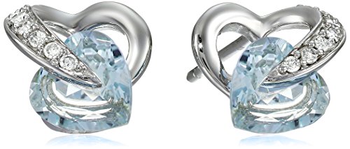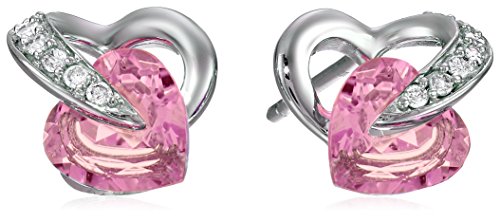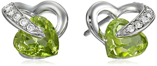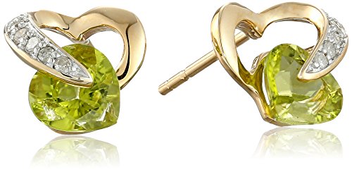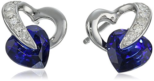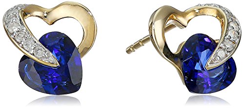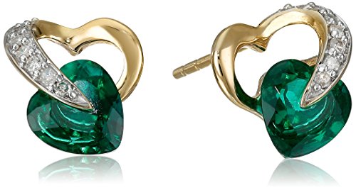 Stud earring featuring heart-shape gemstone nestled within diamond-accented 10k gold heart