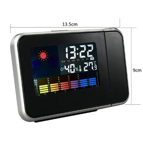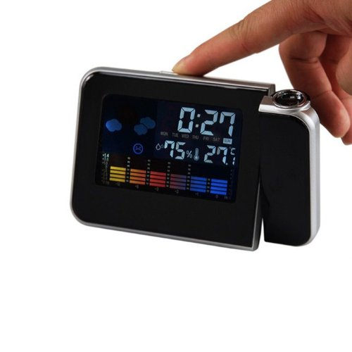 - Title : ERUSUN Digital Time Projector LED Weather Temperature Humidity Wall Projection Alarm Snooze Clock Calendar