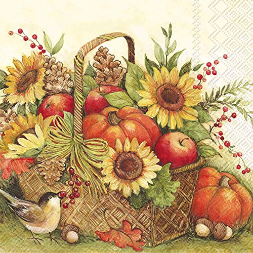 Ideal Home Range 3-Ply Paper Beverage/Cocktail Napkins, 20-Count, 5 x 5-Inches Folded, Fall Basket