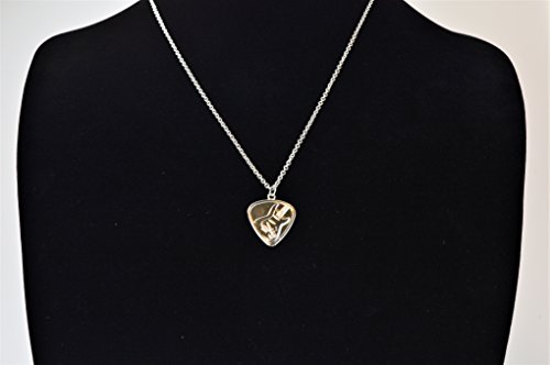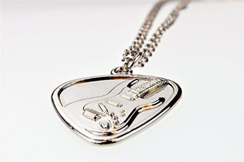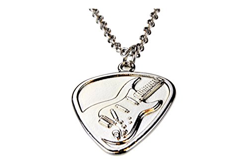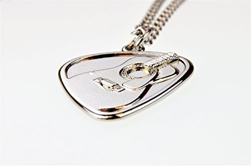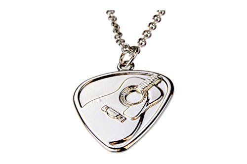 Guitar Pick Pendant Necklace Set - Alloy Polished Chrome Electric and Acoustic Guitar Design (2 Necklaces) on 20 Inch Chain.