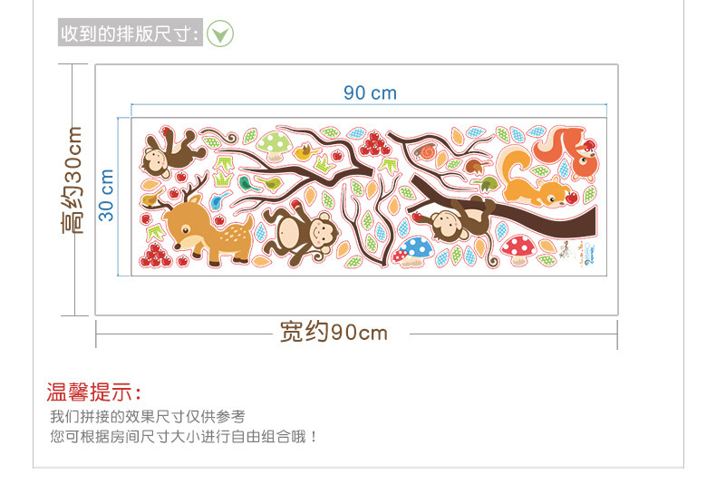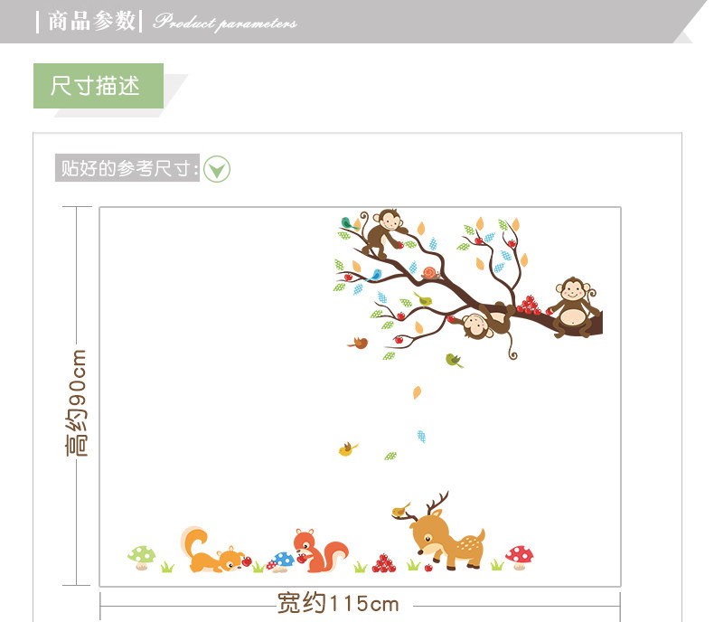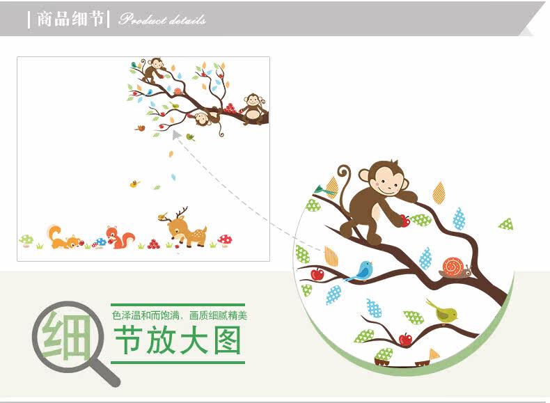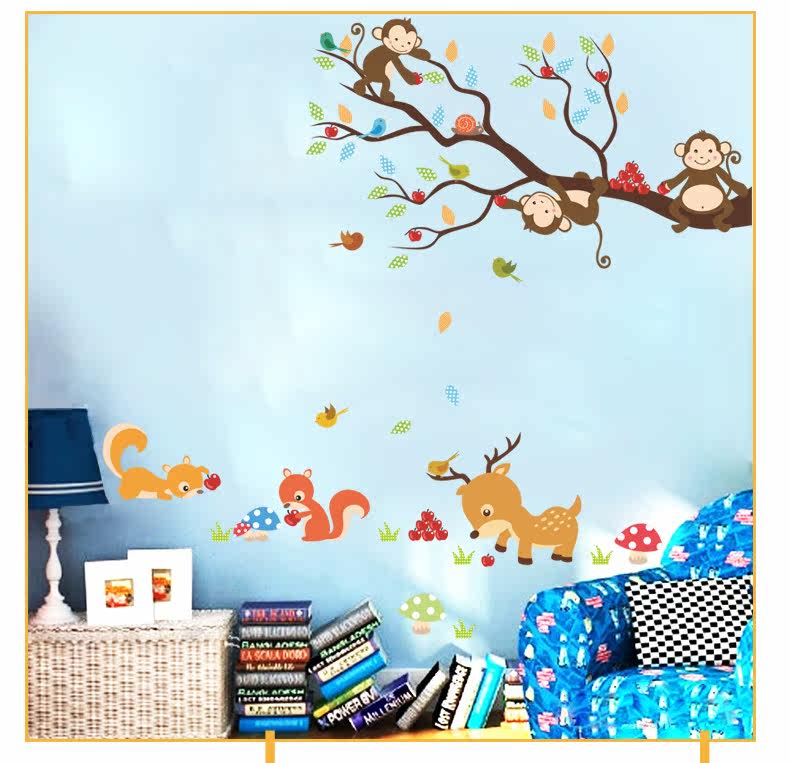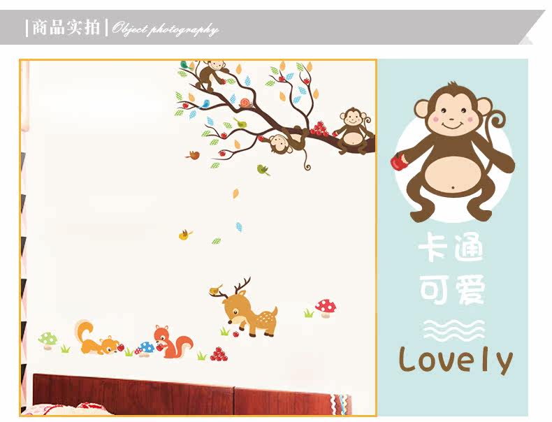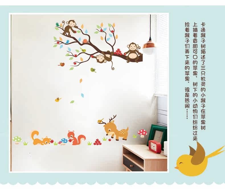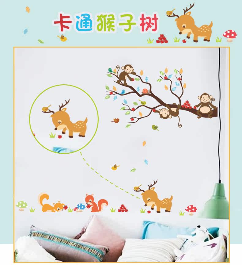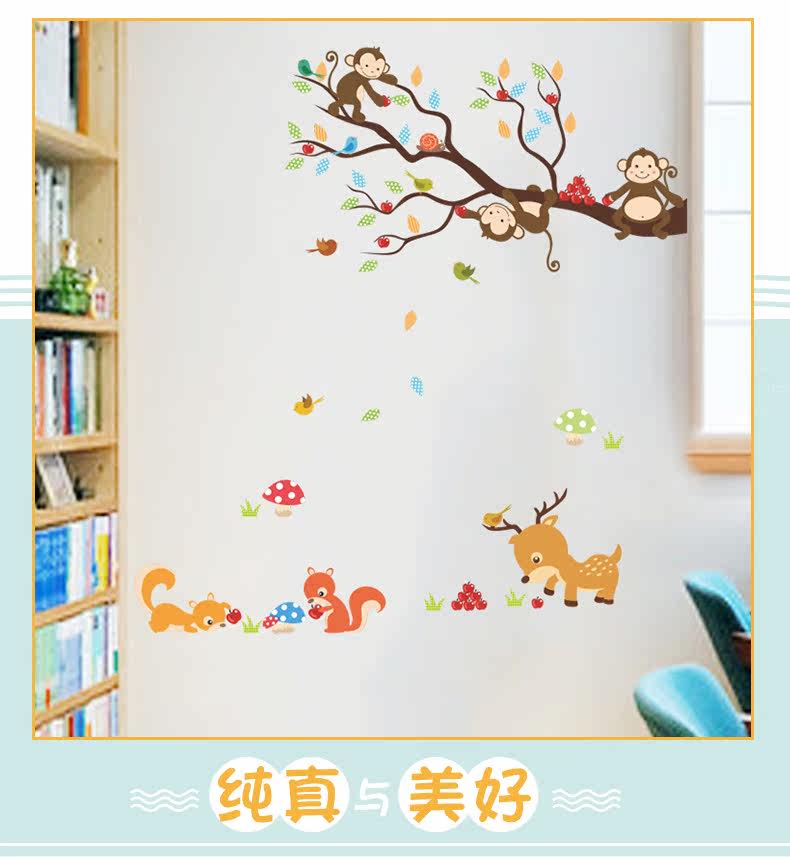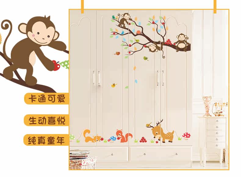 可爱卡通小动物猴子树墙贴幼儿园壁纸墙面装饰儿童房间卧室自粘