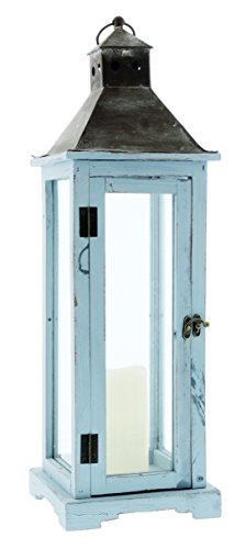 -. Title : Regency 23.5" Blue Wood Lantern with Flameless Pillar Candle