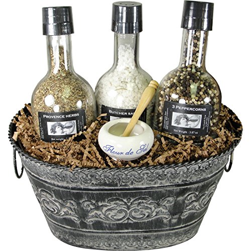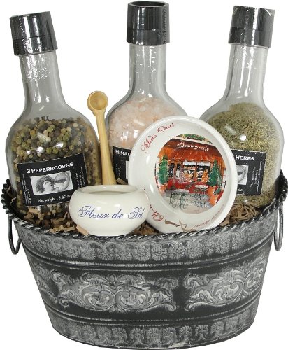 -. Binding : Misc. -. Brand : European Gift Baskets -. EAN : 0845992099911 -. Feature : Our gift baskets contain only full size products, packaged in a pretty, reusable basket / Contains a Fleur de Sel dish and salt spoon / Le Pere Pelletier Butcher Salt Salt in Grinder / Le Pere Pelletier Mixed Peppercorns in Grinder / Le Pere Pelletier French Herbs in Grinder -. Label : European Gift Baskets -. Manufacturer : European Gift Baskets -. PackageQuantity : 1 -. ProductGroup : Grocery -. ProductTypeName : GOURMET_FOOD -. Publisher : European Gift Baskets -. Studio : European Gift Baskets -. Title : Spice and Salt Grinders Gourmet Gift Basket With French Products -. UPC : 845992099911